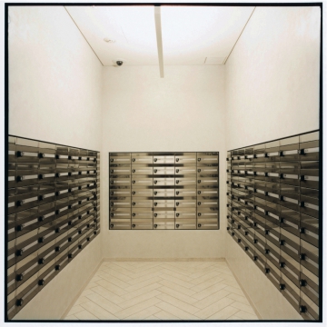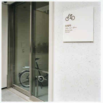 共用施設のインフォメーションボードは視覚的に捕えやすいシンプルでミニマルな物を使用。デザイン性だけでなく機能性にも配慮しています。