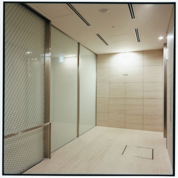 オフィスワーカーの利用するエントランスから切り離されたこの空間は、まるでヨーロッパの小さな公園の様な雰囲気です。