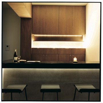 柔らかい照明に照らされると浮かび上がる自然素材の風合いが、オフタイムに相応しい寛ぎの空間を演出します。