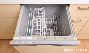 食事の後の片付けの手間を軽減する食器洗浄乾燥機を導入。